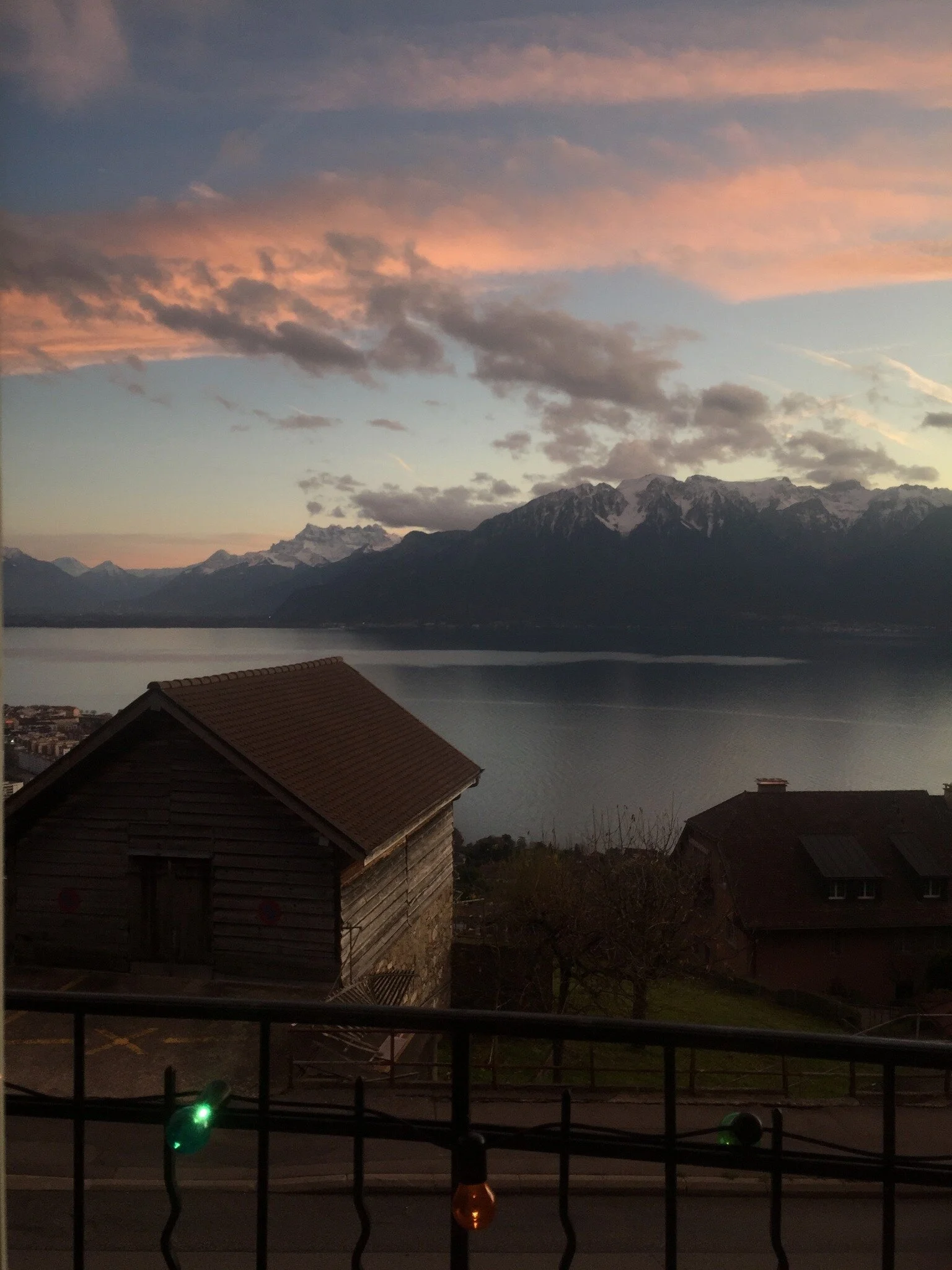 The view is incomparable as we are lucky enough to live right next to the lac Léman. Day after day we gaze across the lake at the beautiful mountains opposite us, watching the snow inch its way up their flanks as temperatures rise, revelling in every revealed crevice. Every night, a sunset blush envelops our silent stone companions across the way; the water runs a deeper blue and the mountains turn plum-purple.