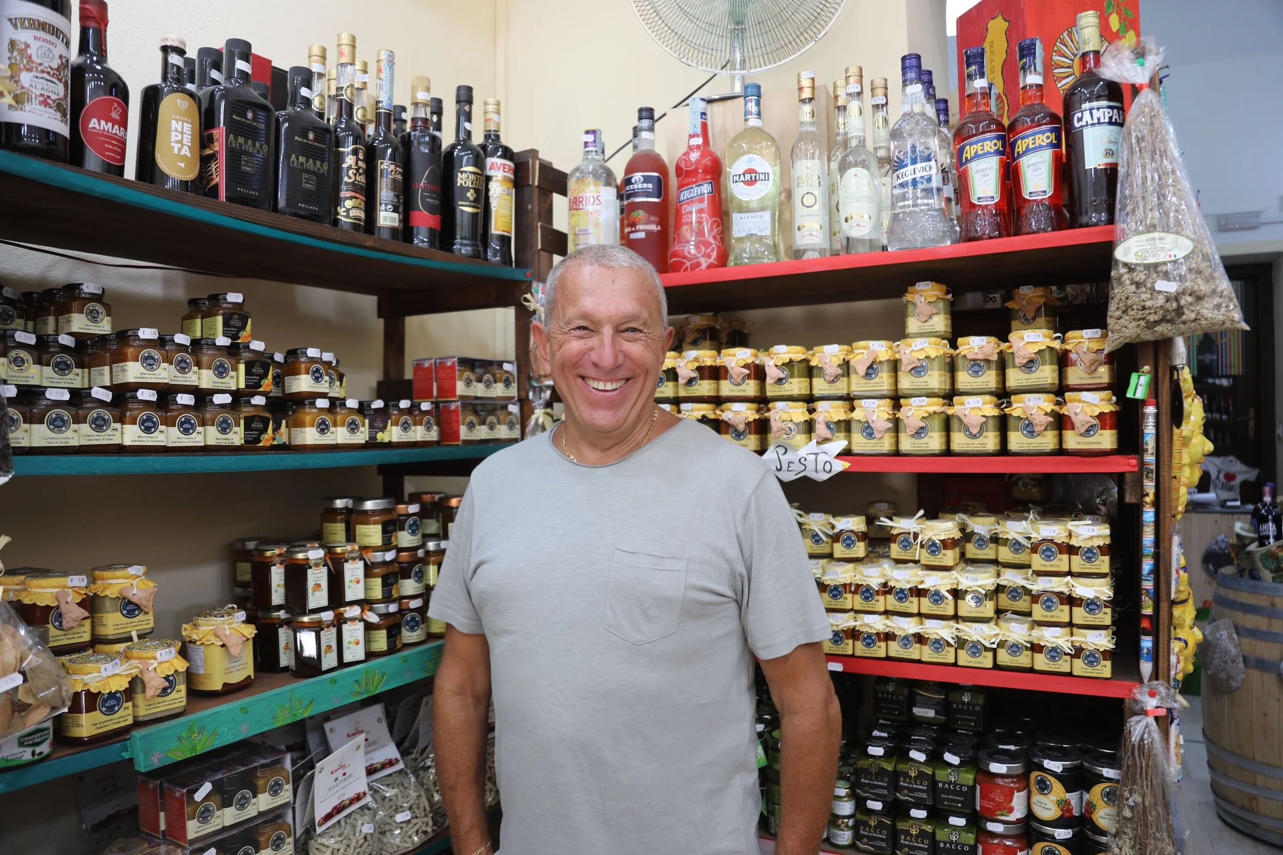 Marco Ferro, 62, is the owner of A Ma Che Bontà, a shop in Palermo’s historical centre selling classic Sicilian produce – from Modica’s renowned grainy chocolate to pistachios from Bronte. He’s been part of the scheme for nine years. “I refused to pay something that wasn’t due, I didn’t want to participate in illegality,” he says. “When I heard about the AddioPizzo scheme, I wanted to join straight away. The support network has been very important for us.”