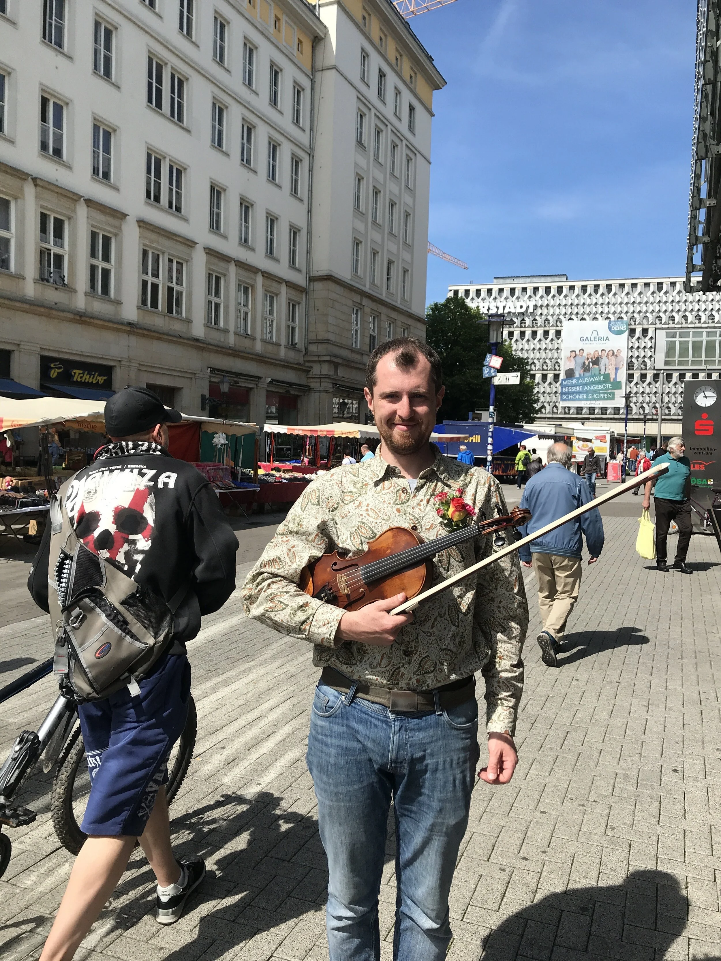 So five years ago he began travelling to Germany twice a year to play street concerts with other musicians. They formed a string quartet and would perform in different German cities, usually playing classical music written by German composers.