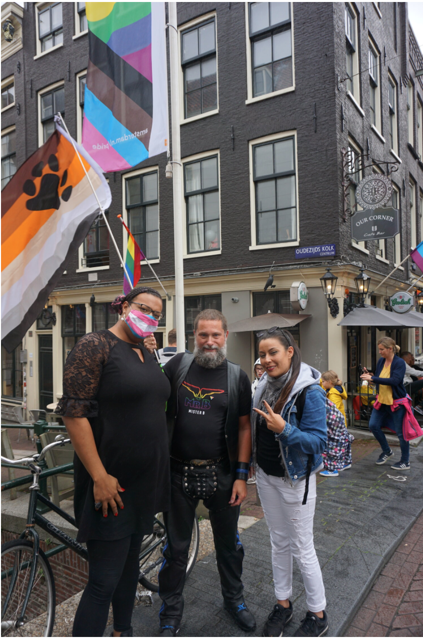 I asked Döne (who identifies as queer, feminist and Muslim), Dirk Metzlar-Rudolph (who is part of the gay, leather and “bear” scenes) and BeyonG Veldkamp (“I don’t fit in any one label”) to walk the Find All Flags tour with me. They belong to different parts of the LGBTQ+ community, but have all been to many Prides.